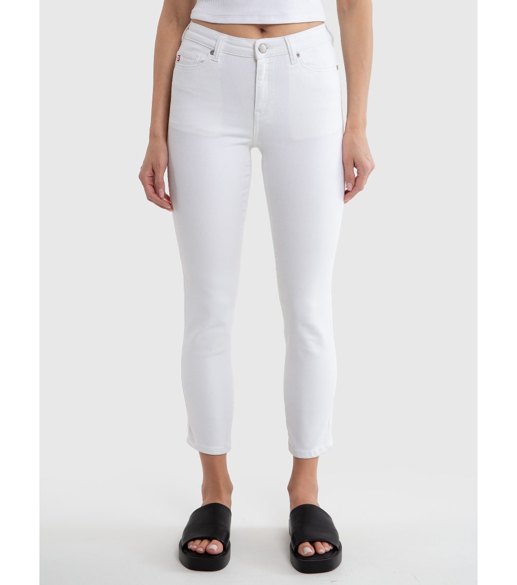 Big Star Blugi skinny albi ADELA Blugi skinny de damă cu buzunare laterale și gaici pentru curea.