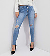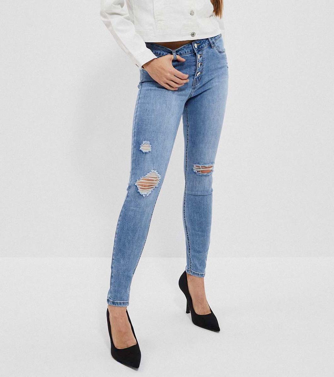 Moodo Blugi slim din bumbac albastru Rida, cu petice