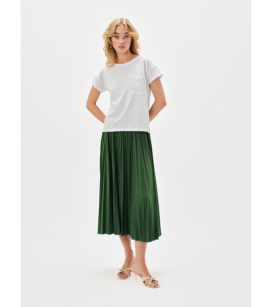 Bluză albă cu buzunar din dantelă
