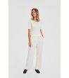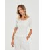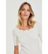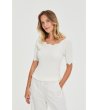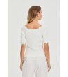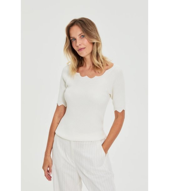 Moodo Bluză albă de damă cu mâneci scurte și decolteu ondulat Bluză tricotată cu siluetă mulată