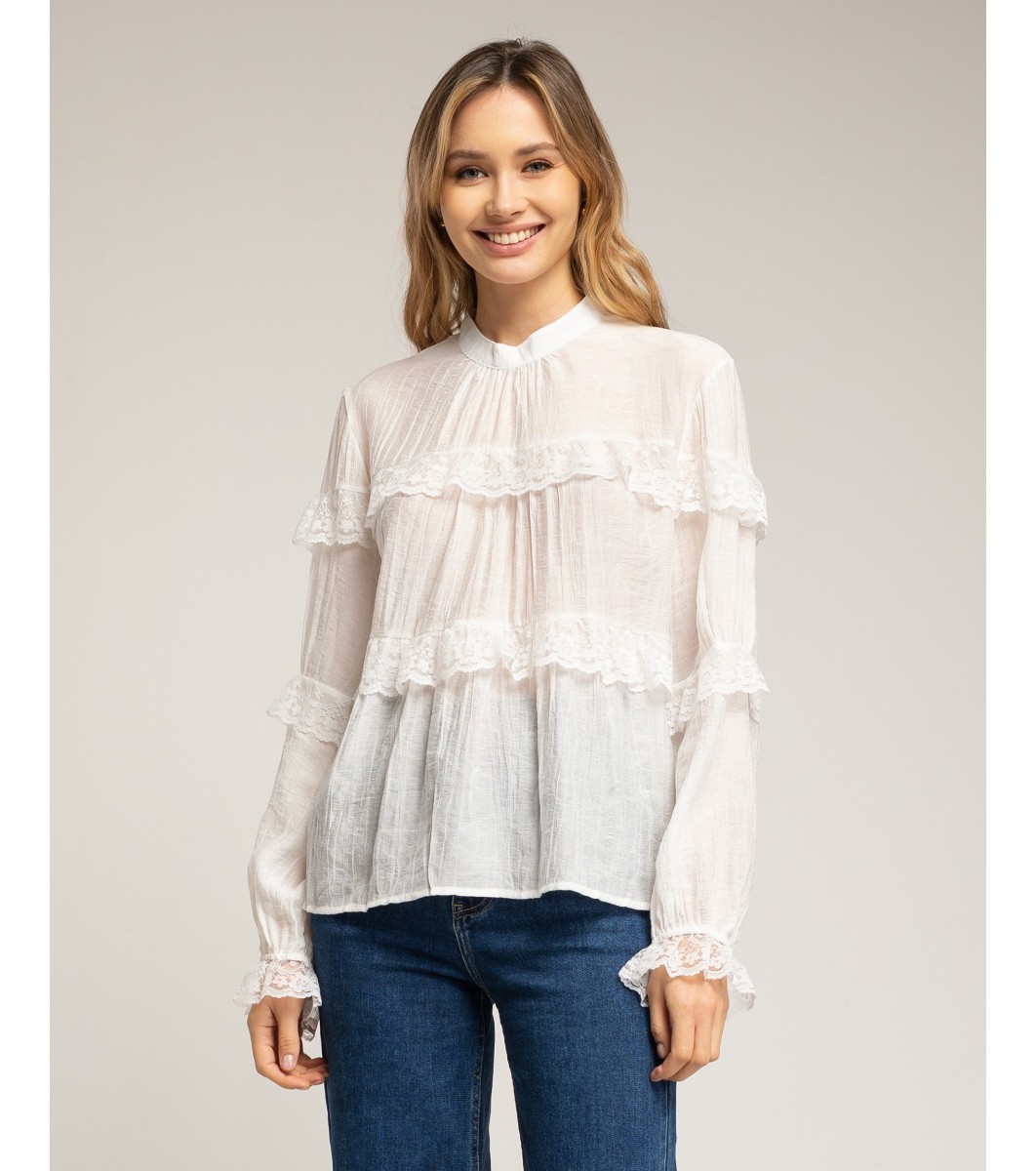 Bluză albă din material semitransparent cu dantelă