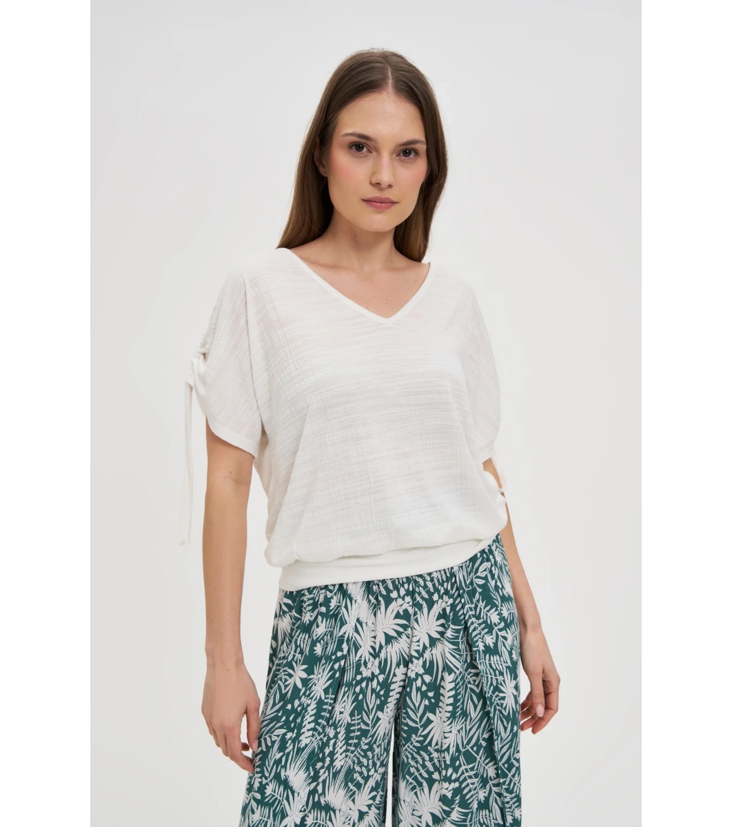 Moodo Bluză albă, simplă, de damă Decolteu în V