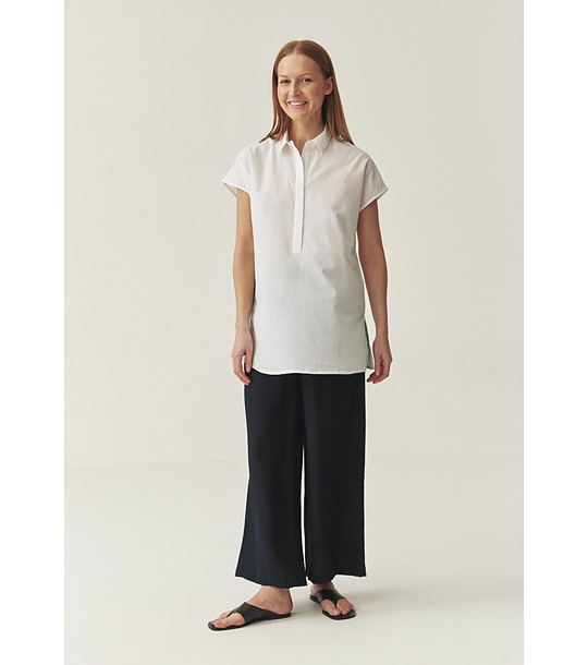 Bluză albă, tip tunică, cu mâneci scurte