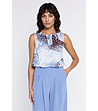 Bluză albastră fără mâneci pentru femei, cu imprimeu