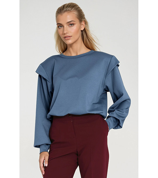 Nife Bluză albastră supradimensionată pentru femei Decolteu rotund