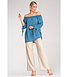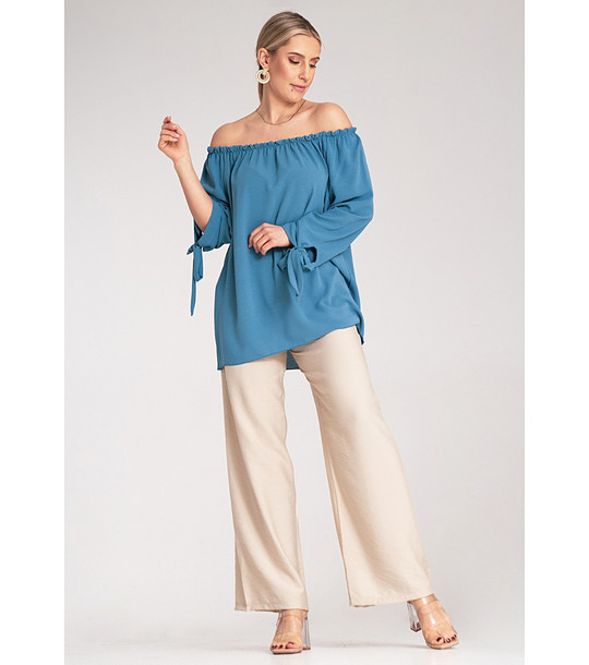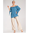 Figl Bluză albastră supradimensionată pentru femei Irlika Decolteu elastic
