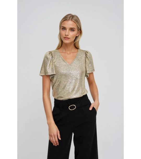 Moodo Bluză aurie de damă Decolteu în V
