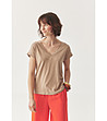 Tatuum Bluză bej de damă cu mâneci scurte și decolteu în V Varina Bluză de damă cu decolteu în V.