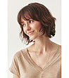 Bluză bej de damă cu mâneci scurte și decolteu în V Varina