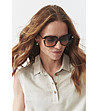 Bluză de damă fără mâneci, cu croială dreaptă și guler clasic. Partea din față are o fentă scurtă cu nasturi. Spatele este curat, iar tivul este ușor rotunjit.