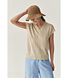 Bluză bej tricotată cu laterale ajurate Netta din lyocell și in