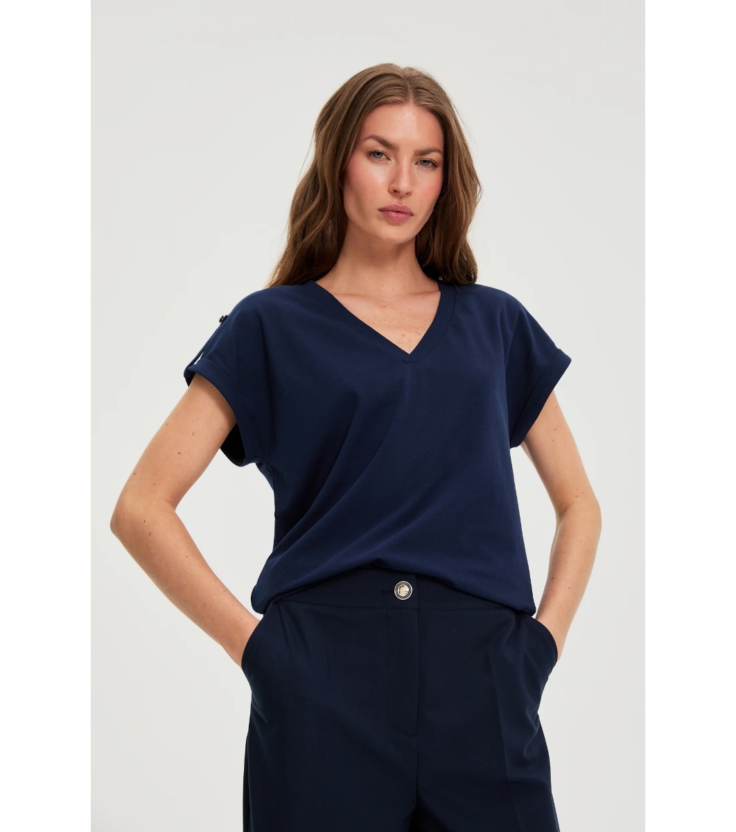 Moodo Bluză bleumarin din bumbac cu decolteu în V Decolteu în V.