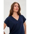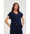 Bluză bleumarin din bumbac cu decolteu în V