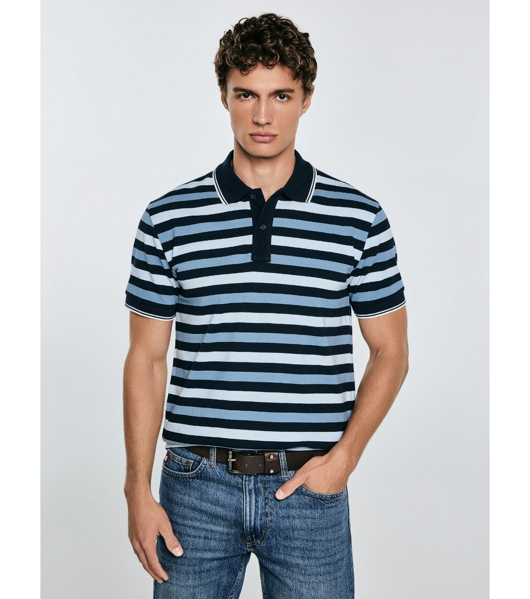 Big Star Bluză bărbătească din bumbac cu dungi în nuanțe de albastru Seulir Guler clasic și nasturi