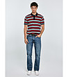Bluză bărbătească din bumbac cu dungi roșii, negre și albe Seulir
