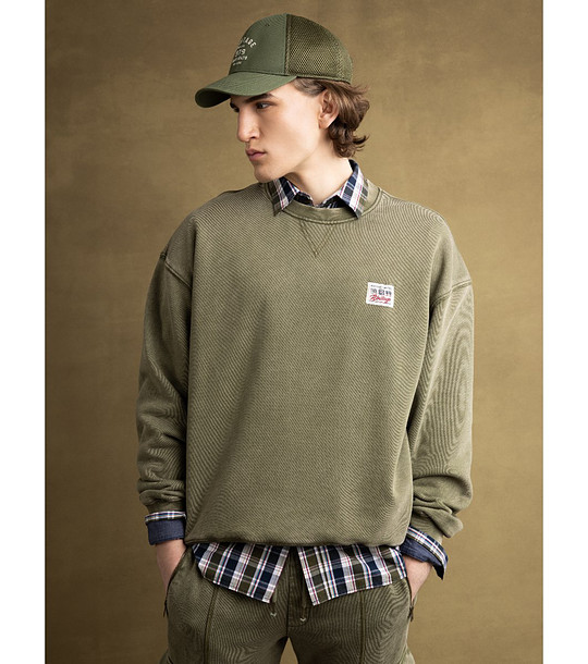 Big Star Bluză bărbătească verde din bumbac CARON Decolteu rotund