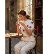 Bluză crem cu mâneci scurte și motiv floral Mona
