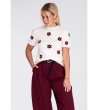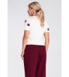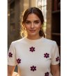 Figl Bluză crem cu mâneci scurte și motiv floral Mona Bluză dreaptă tricotată cu mâneci scurte și decolteu rotund.