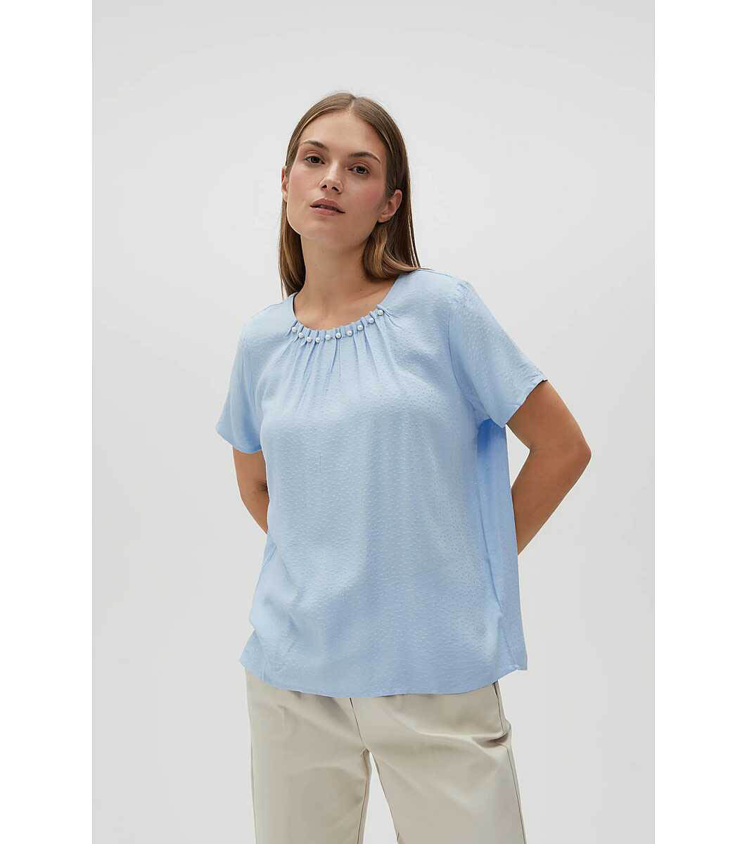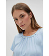 Moodo Bluză de damă albastru deschis Decolteu rotund cu perle