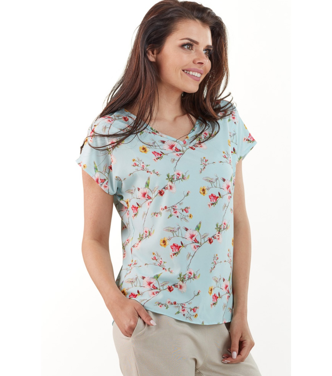Bluză de damă albastru deschis cu imprimeu Thalia