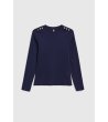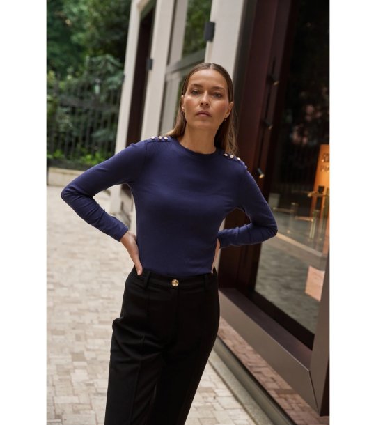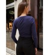 Moodo Bluză de damă albastru închis din bumbac Tricotaj fin cu nervuri în relief.