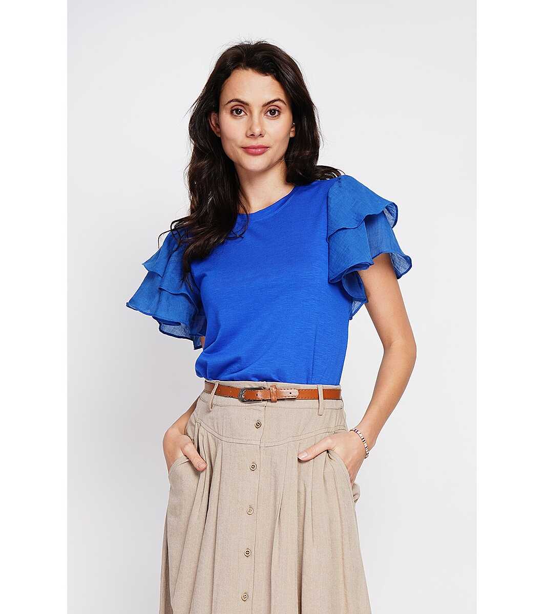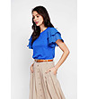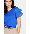 Le jardin du Lin Bluză de damă albastru regal din in și bumbac Elpida Decolteu rotund