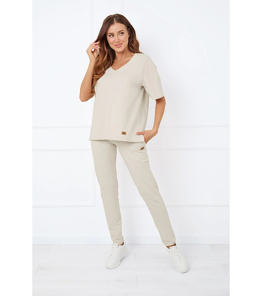 Italian Fashion Bluză de damă bej din bumbac Caro Decolteu în V