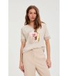 Bluză de damă bej din bumbac cu imprimeu
