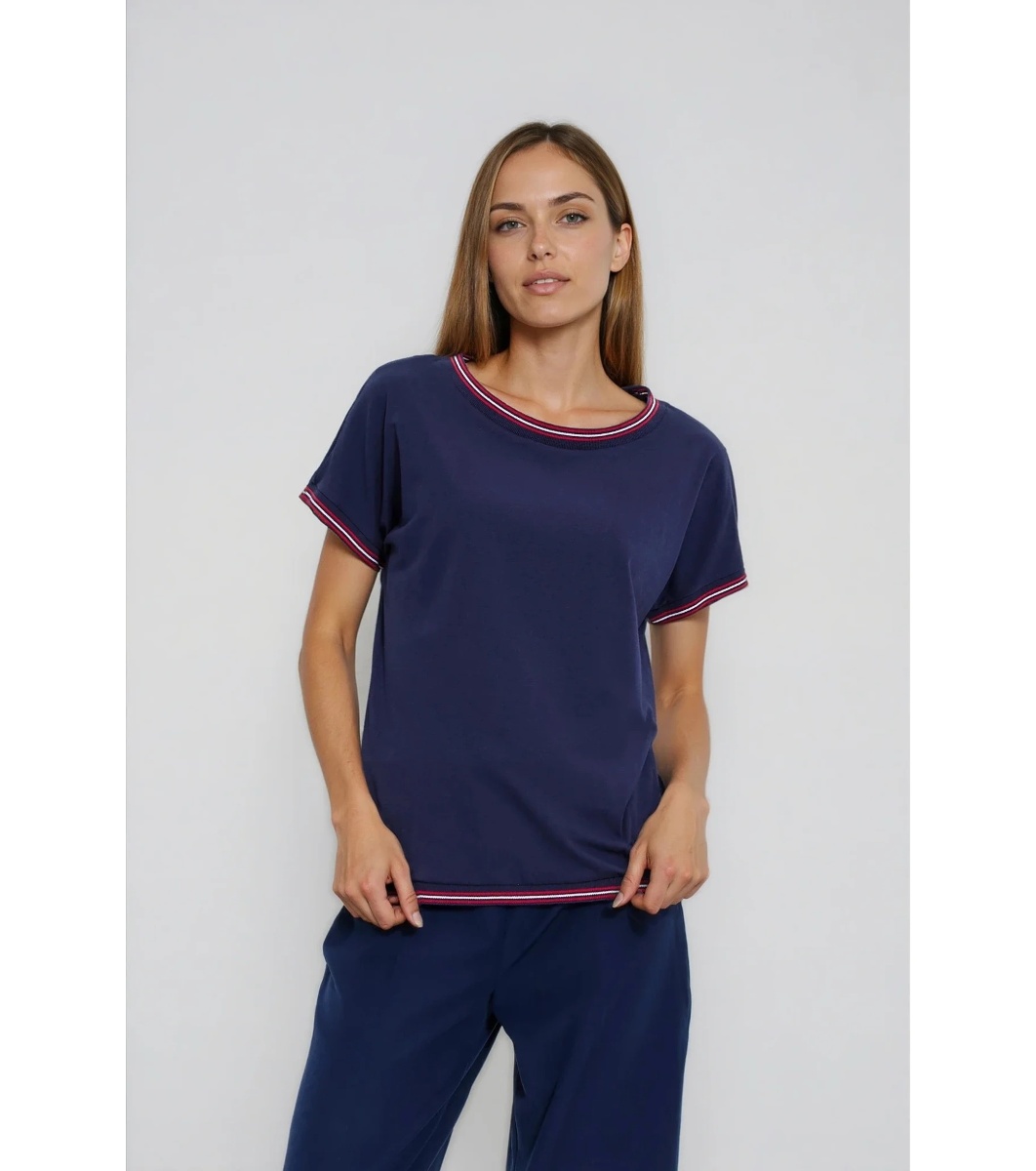 Moodo Bluză de damă bleumarin cu bordură Decolteu rotund