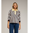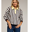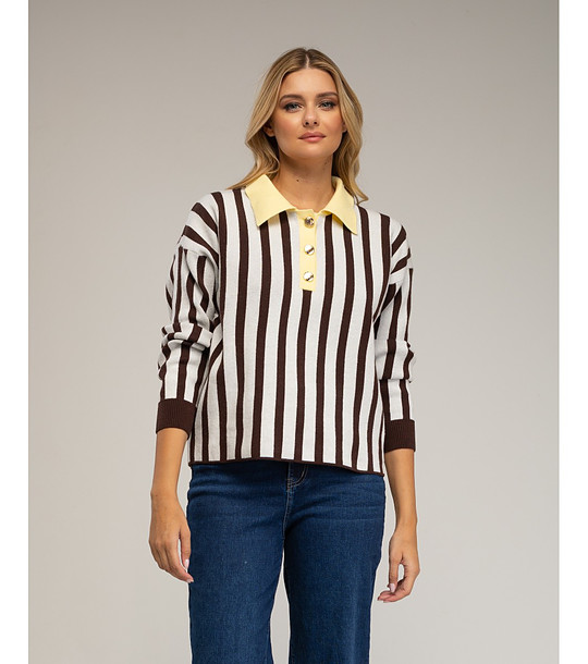 Tantra Bluză de damă cu dungi, alb și maro Guler clasic