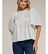 Tantra Bluză de damă cu dungi albe și bleumarin Decolteu rotund