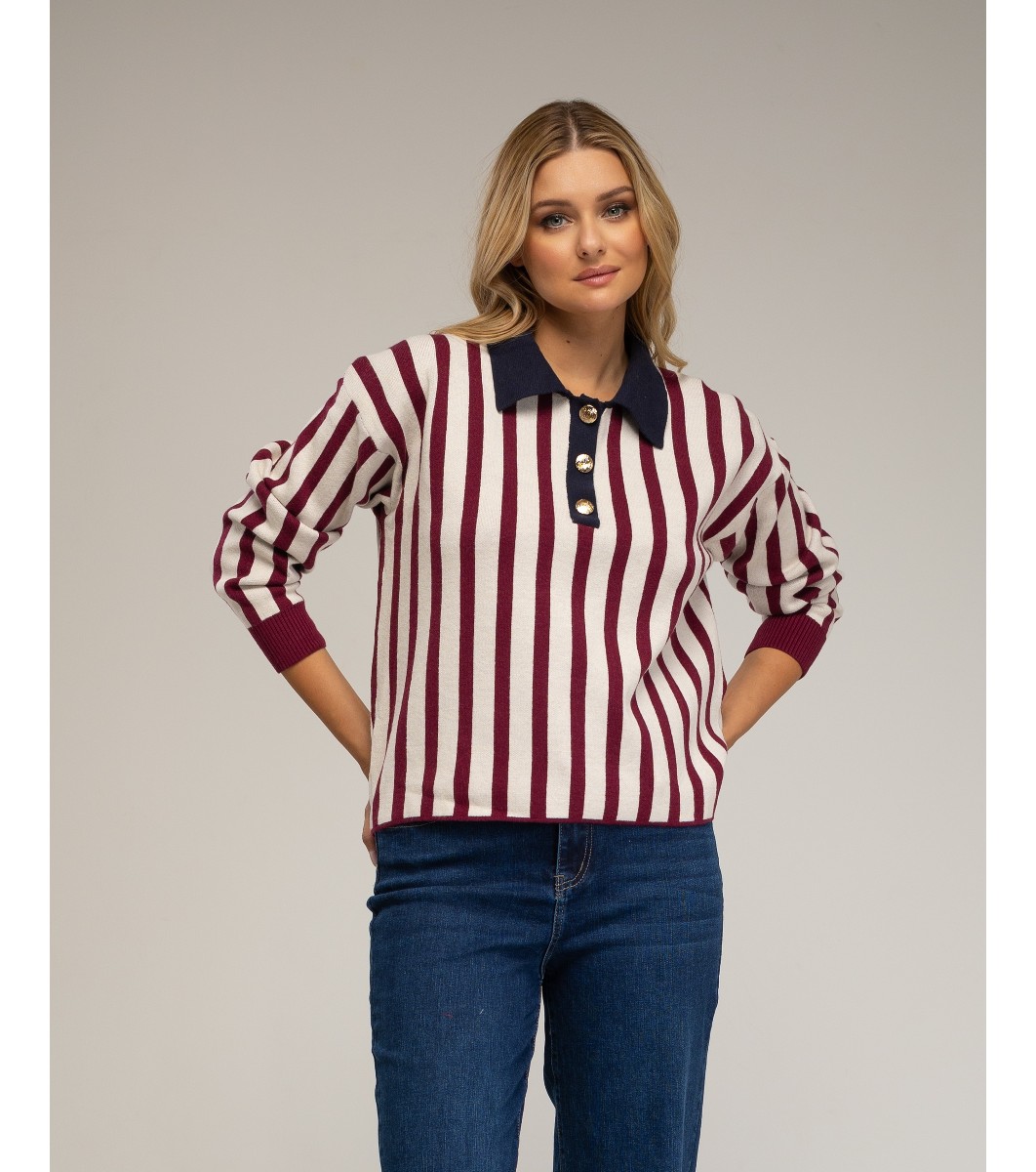 Tantra Bluză de damă cu dungi, în culorile bordo și crem Guler clasic