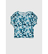 Bluză de damă cu imprimeu floral într-o nuanță albastru-verzuie