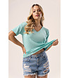 Babell Bluză de damă cu mânecă scurtă, culoarea mentă, Serina Decolteu în V