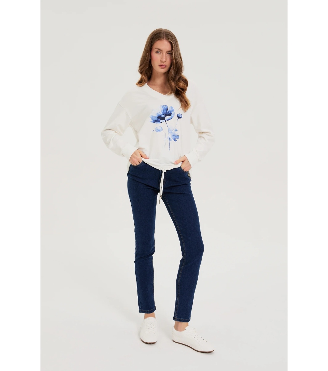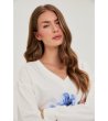Moodo Bluză de damă de culoare crem cu imprimeu Flora