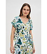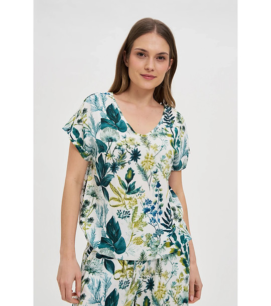 Bluză de damă de culoare crem cu imprimeu în nuanțe de verde