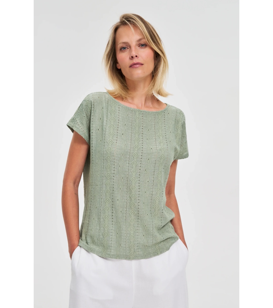 Bluză de damă de culoare măsliniu cu perforații