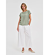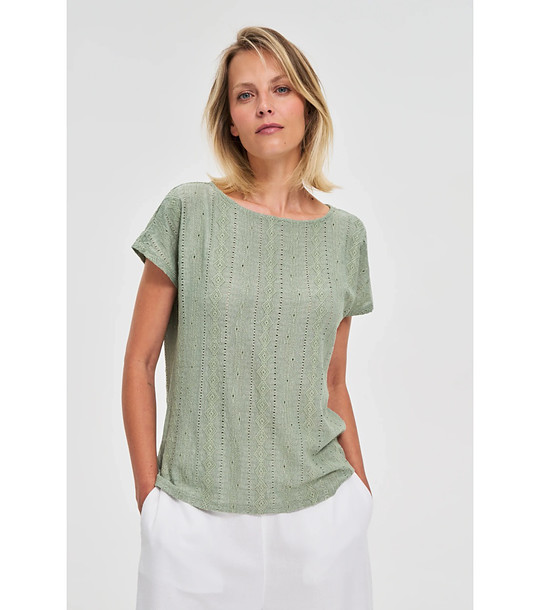Moodo Bluză de damă de culoare măsliniu cu perforații Decolteu rotund