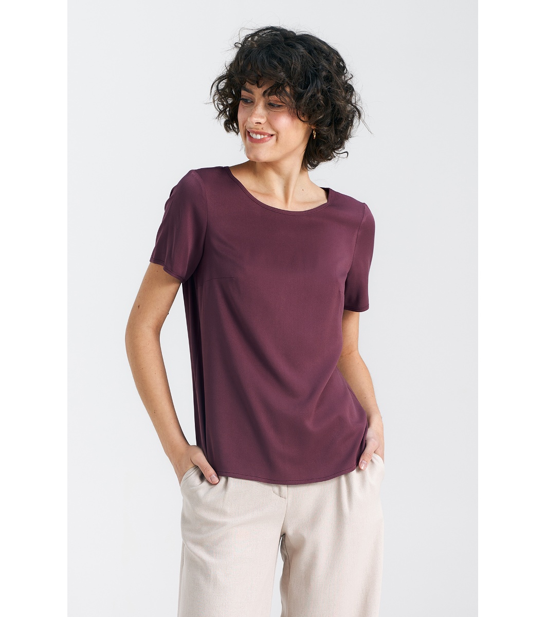 Nife Bluză de damă de culoare prună cu mâneci scurte Croială lejeră