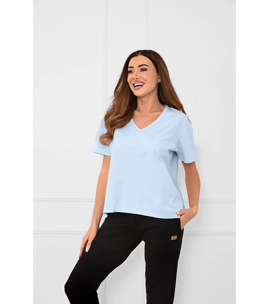 Italian Fashion Bluză de damă din bumbac, albastră, cu mâneci scurte, Klara Mâneci scurte