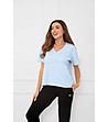 Bluză de damă din bumbac, albastră, cu mâneci scurte, Klara