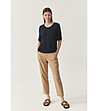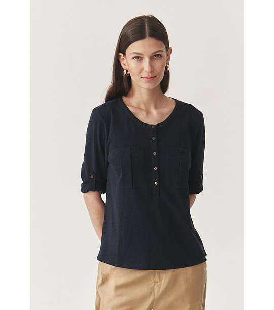 Tatuum Bluză de damă din bumbac albastru închis cu buzunare Emelia Bluză de damă cu decolteu rotund și nasturi.