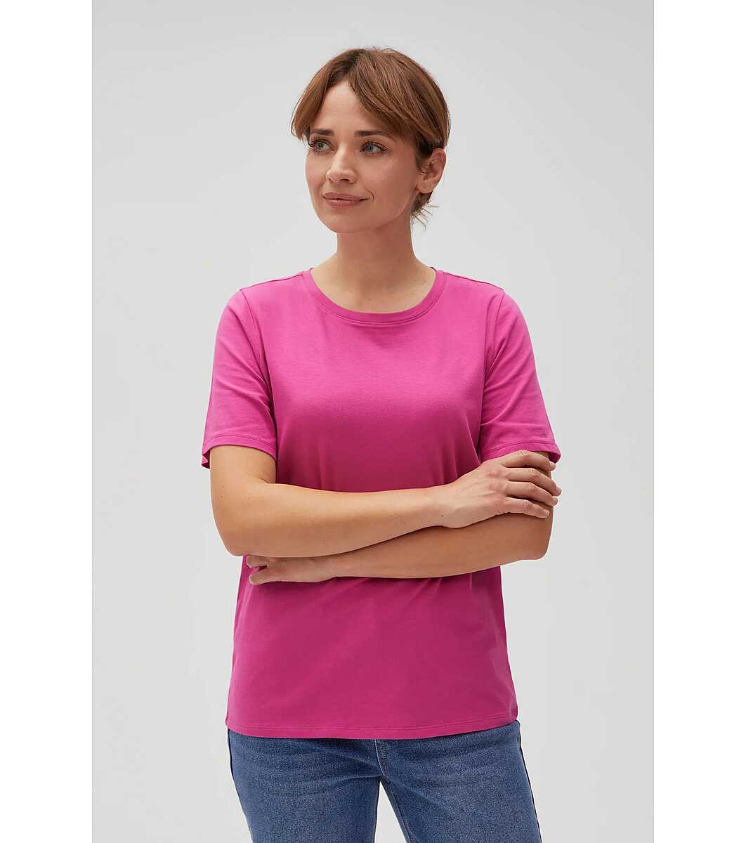Moodo Bluză de damă din bumbac ciclamen Decolteu rotund
