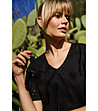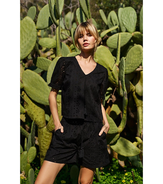 Moodo Bluză de damă din bumbac, confecționată din dantelă Madeira, de culoare neagră Decolteu în V