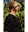 Bluză de damă din bumbac, confecționată din dantelă Madeira, de culoare neagră