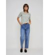 Moodo Bluză de damă din bumbac cu dungi verzi Decolteu rotund