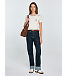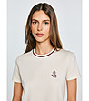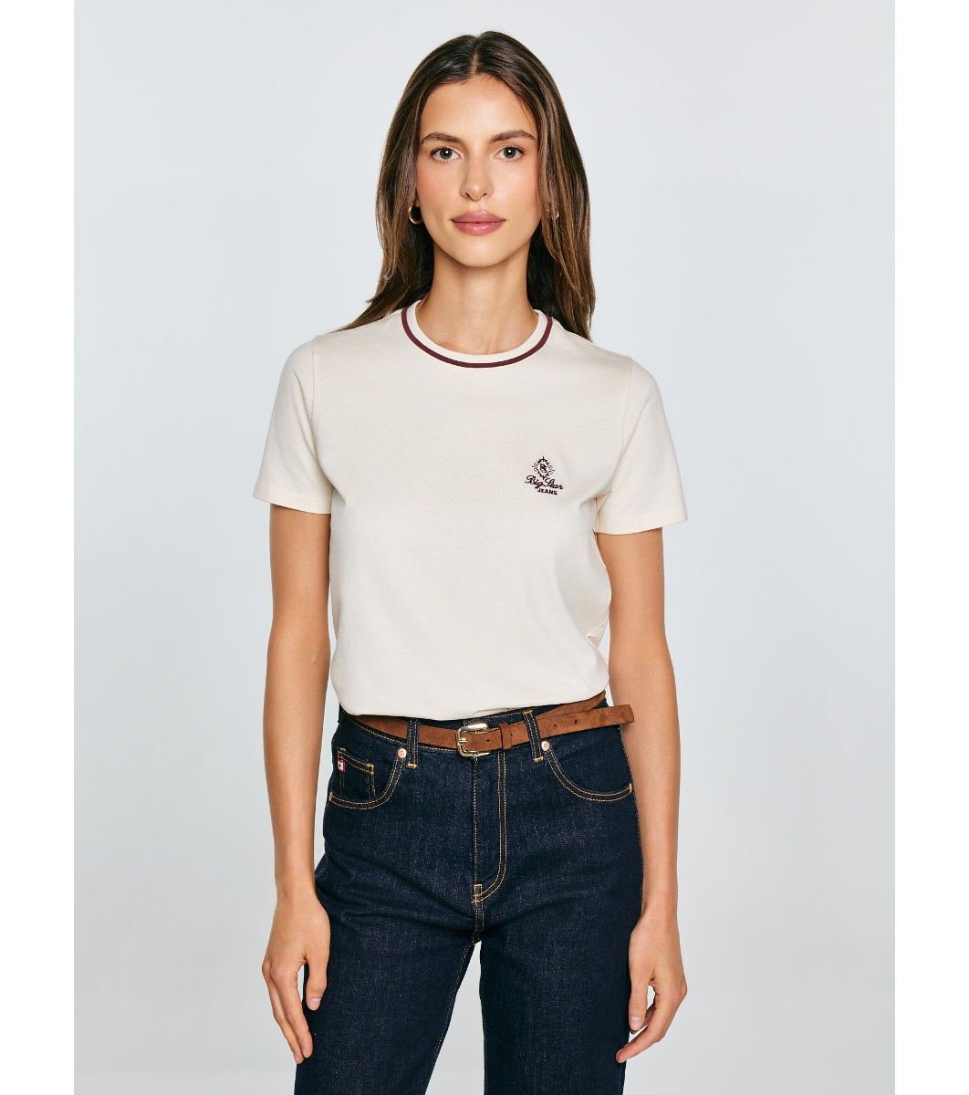 Big Star Bluză de damă din bumbac, culoare crem, Lemorse Decolteu rotund cu garnitură contrastantă