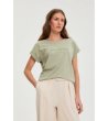 Moodo Bluză de damă din bumbac, culoare verde măsliniu Decolteu rotund