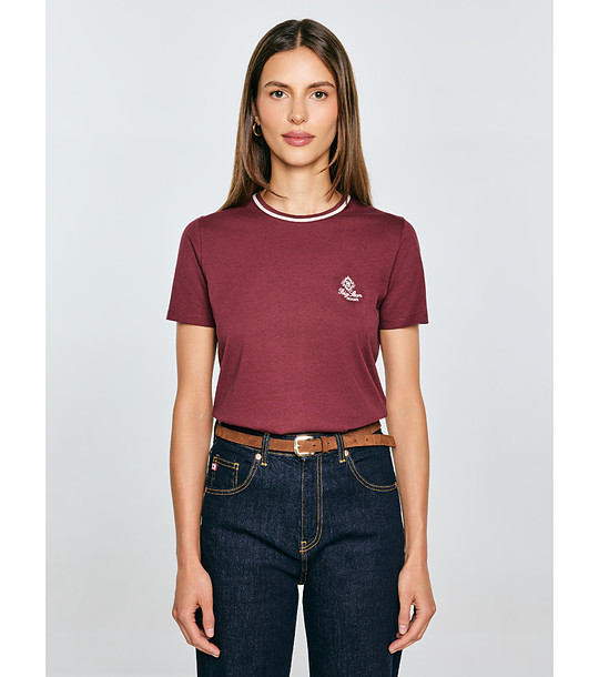 Big Star Bluză de damă din bumbac, culoare vișinie Lemorse Decolteu rotund cu garnitură contrastantă