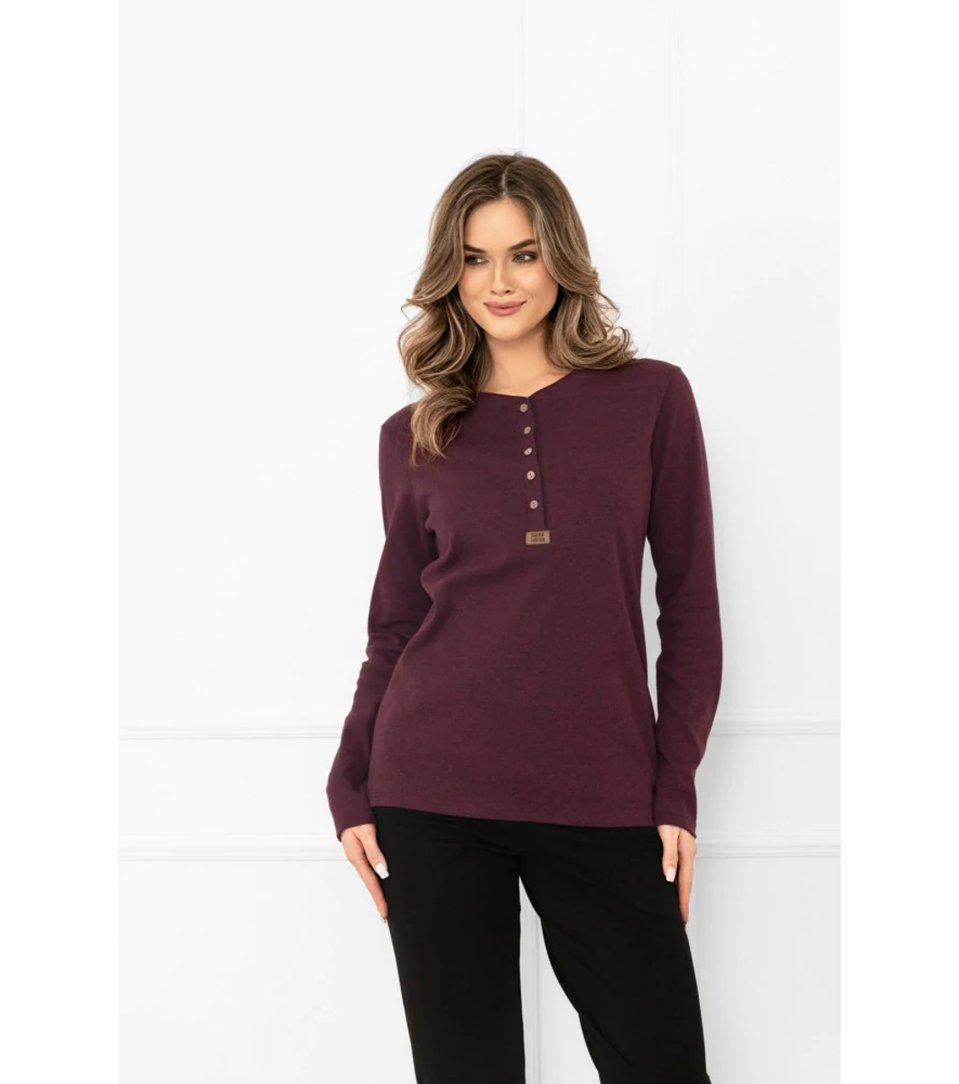 Italian Fashion Bluză de damă din bumbac, culoare vișinie, cu mâneci lungi Gordo Decolteu rotund cu nasturi